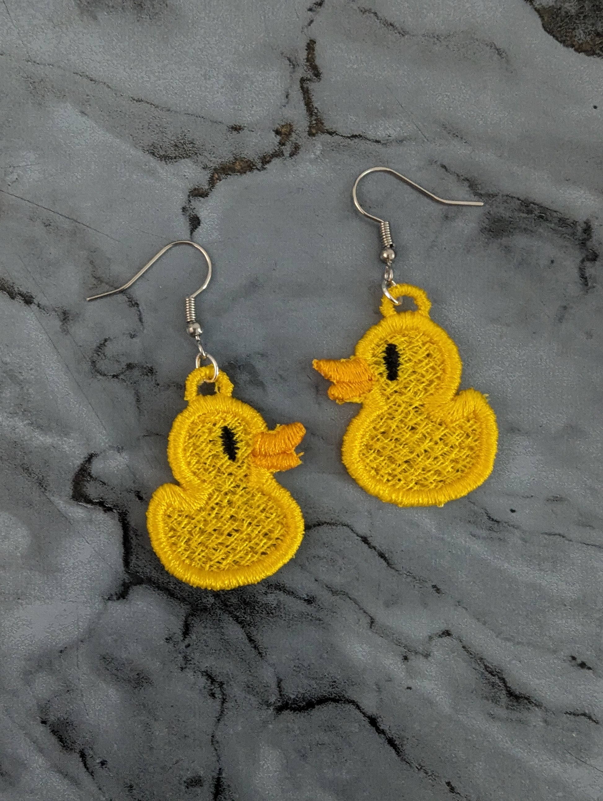 Niedliche Ohrhänger mit gestickten gelben Entchen aus hochwertigem Acrylgarn – ein verspieltes Accessoire für alle, die es charmant mögen. Die feinen Details werden durch die zarte Lace-Verarbeitung unterstrichen, während die robusten Edelstahl-Haken für sicheren Halt sorgen. Perfekt für einen Hauch von Verspieltheit im Alltag oder als liebevolles Geschenk für Entchen-Fans!
